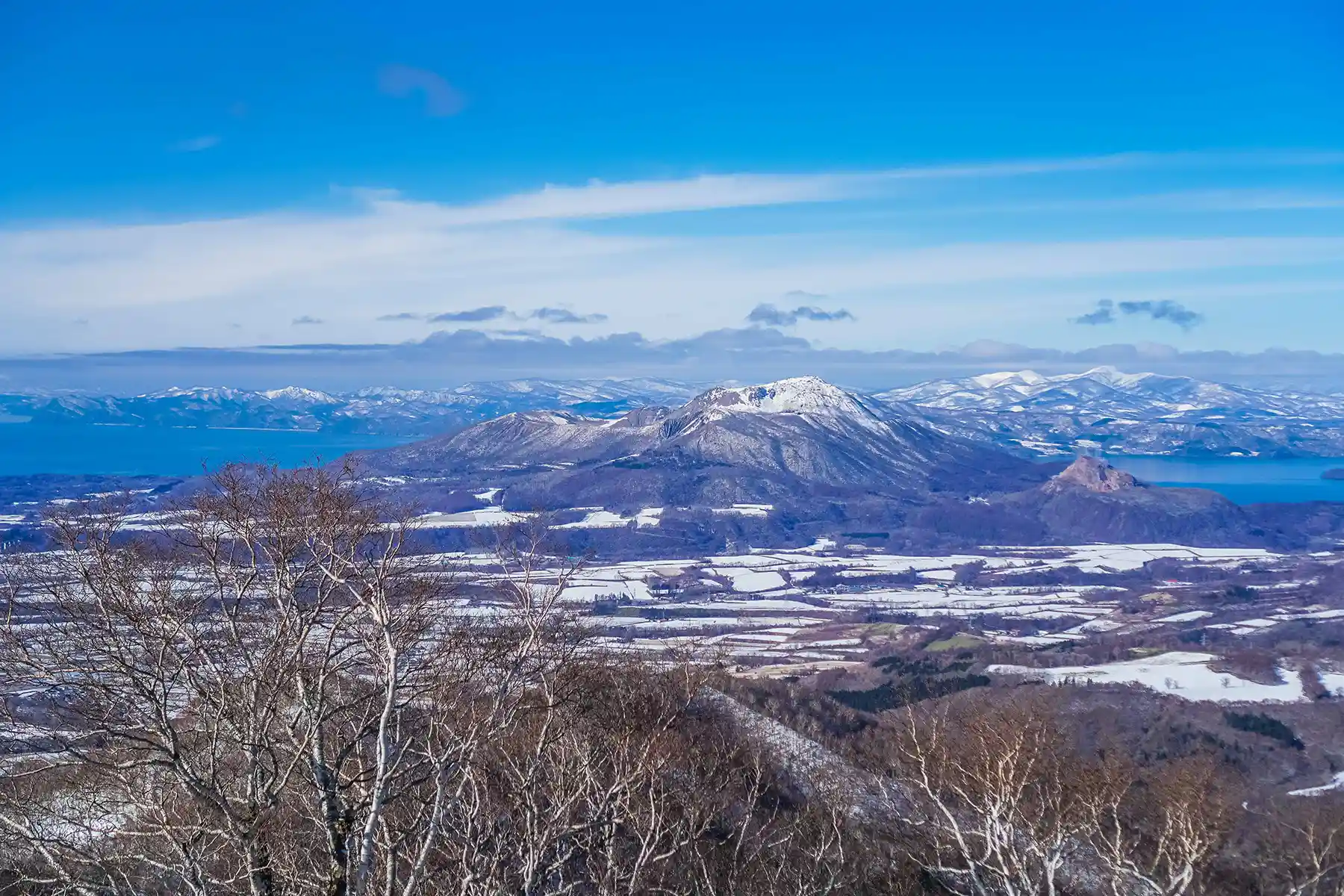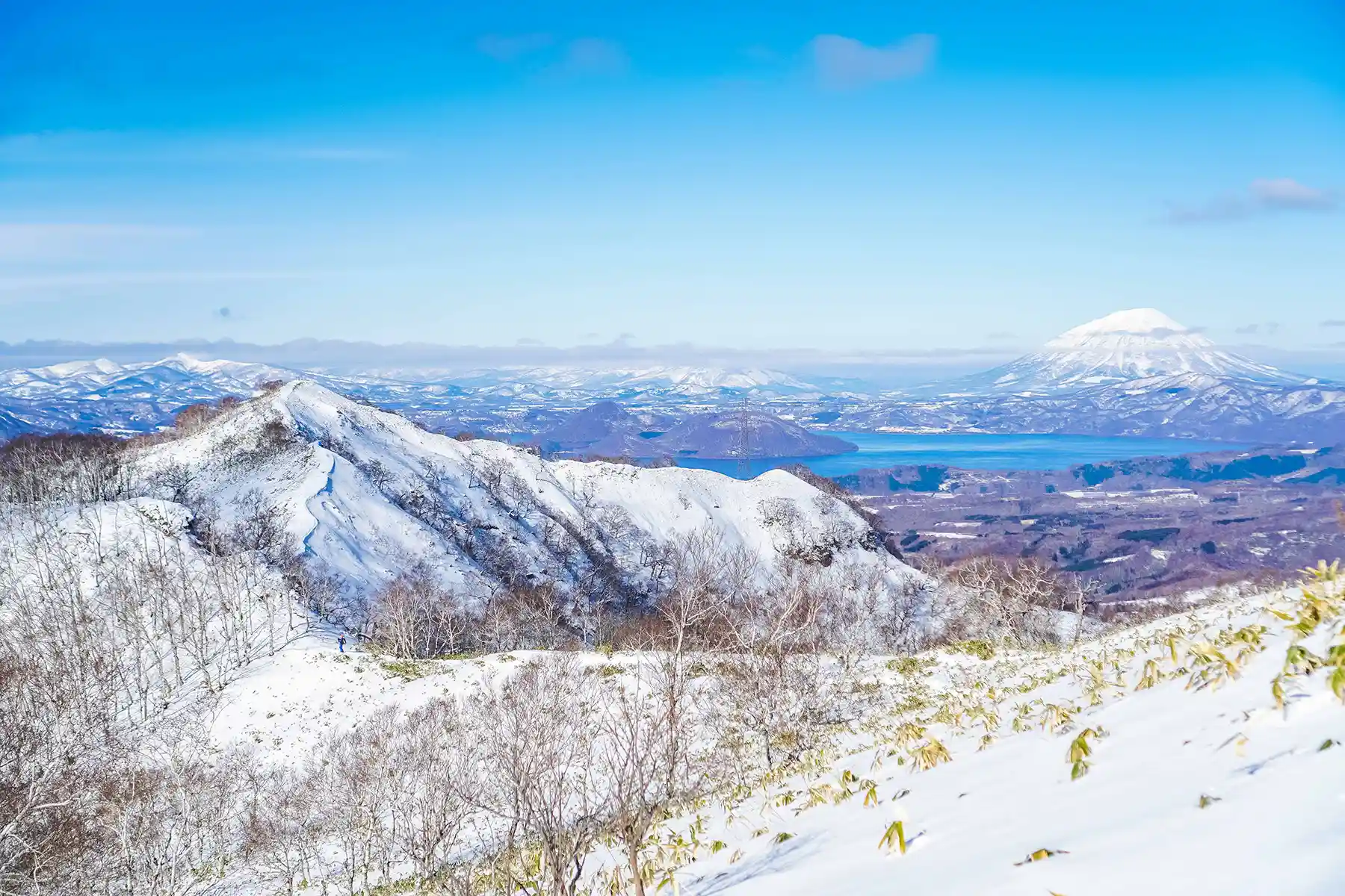 Monbetsudake is a 715m high mountain located near the town of Date near Lake Toya. This mountain offers superb views of the Pacific Ocean, Mt. Usu volcano, and Lake Toya. In winter, it transforms into a stunning and serene scene that captures the essence of Hokkaido’s cold, rugged winter landscape.